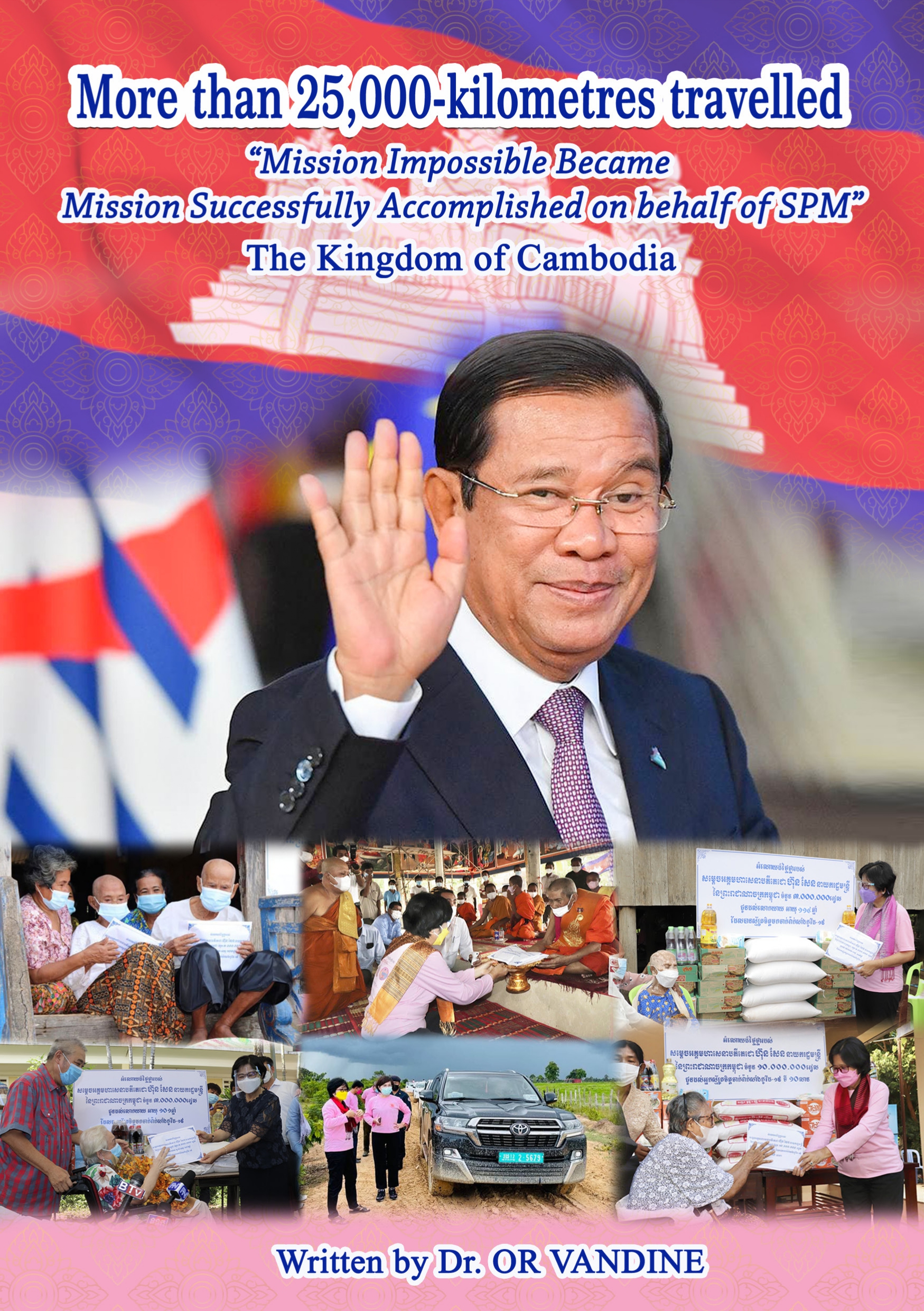 2. The book “25,000 travelled Impossible Mission Became Mission Successfully Accomplished on behalf of Samdech Prime Minister” (published in April 2022 in Khmer and English languages) documents a humanitarian mission to recognise the one-million milestone and the centenarian vaccinated persons during the implementation of the “Blossom Strategy” to roll out the COVID-19 vaccine nationwide in Cambodia. This strategy was initiated by the Samdech Techo Prime Minister at that time to care for and support people, especially older centenarian persons who volunteered for the COVID-19 vaccination, so-called “On-Million Milestone COVID-19 Vaccination Award” (comprised of a 10-million-riel award together with selected food and grocery items) and a “Respectful Centenarian Award” (3-million-riel gift together with selected food and grocery items).
